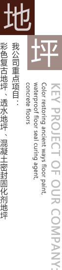 公司主要工程項(xiàng)目有彩色生態(tài)混凝土透水地坪,彩色復(fù)古地坪,藝術(shù)壓花地坪,混凝土密封固化劑地坪,環(huán)氧砂漿地坪,環(huán)氧防靜電地坪,環(huán)氧防滑紋理地坪,環(huán)氧玻璃鋼地坪,金剛砂耐磨地坪,水泥基彩色地坪,舊地面的修補(bǔ),空鼓的治理等。